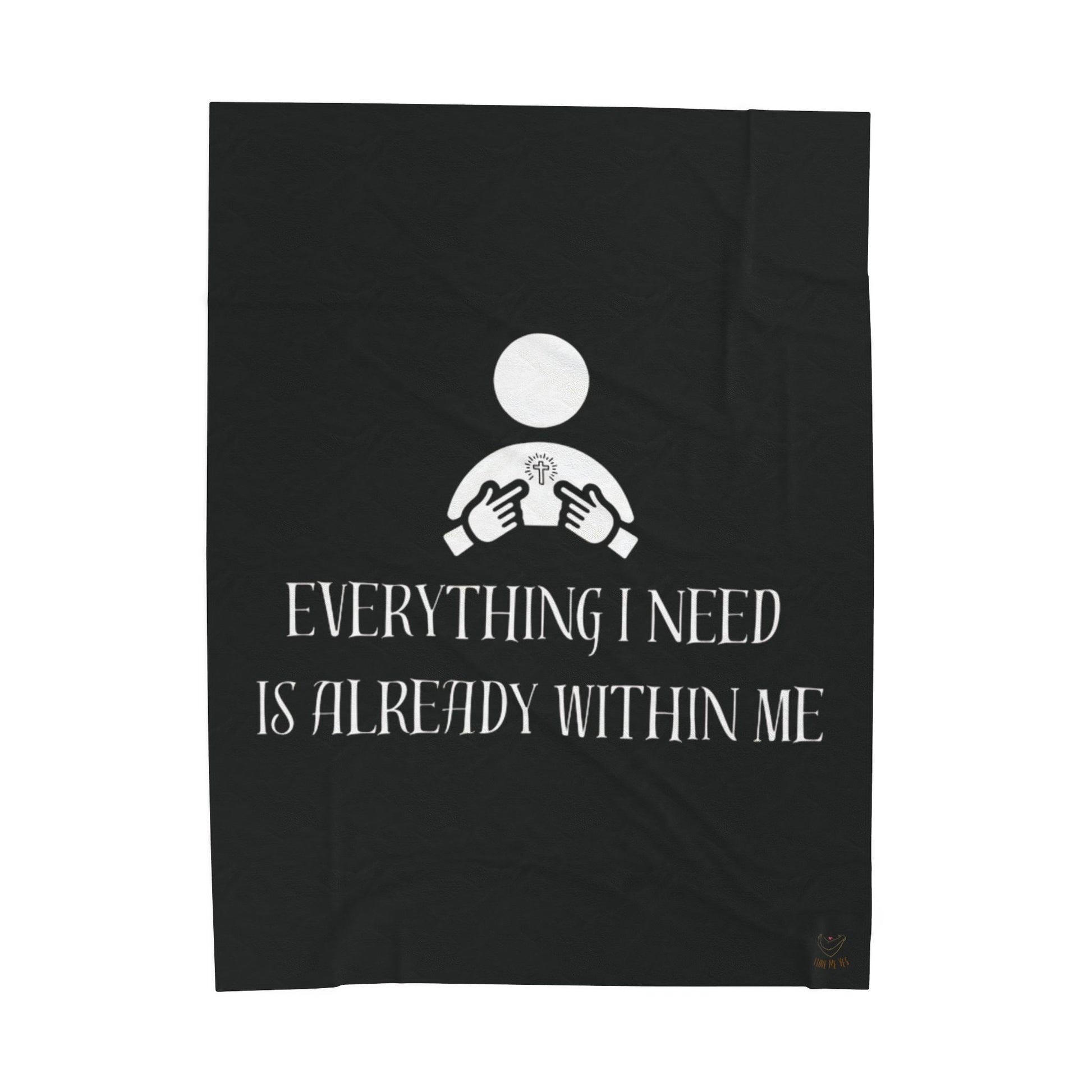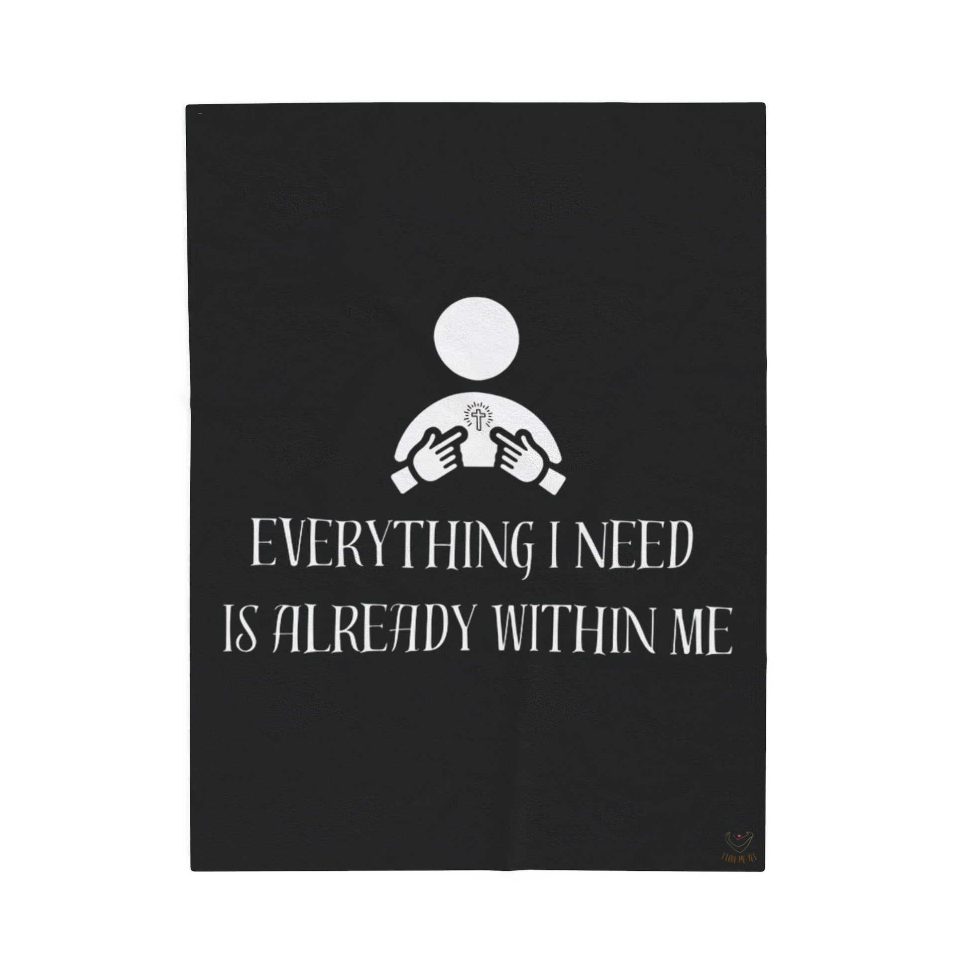 Everything I Need Is Already Within Me Velveteen Plush Blanket BLACK